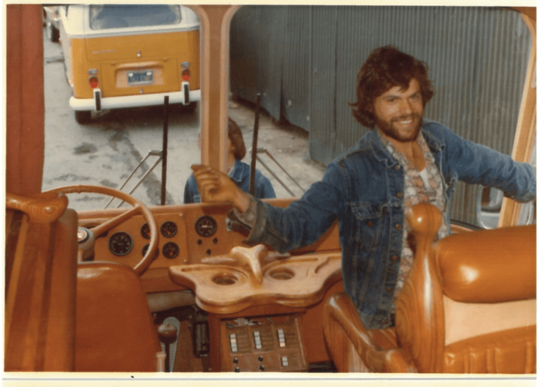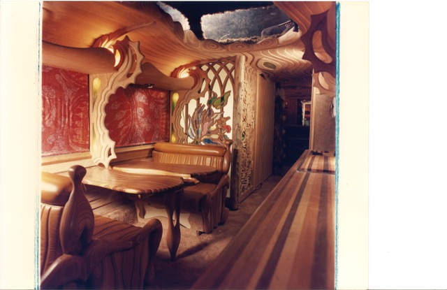 Druid Heights’ Roger Somers caught up with rock star Neil Young in an east coast hotel room while Young was on tour and pitched himself as the designer /craftsman more than capable of taking a standard bus and converting it into a work of art as well as a rolling home on the road for a rock star.
